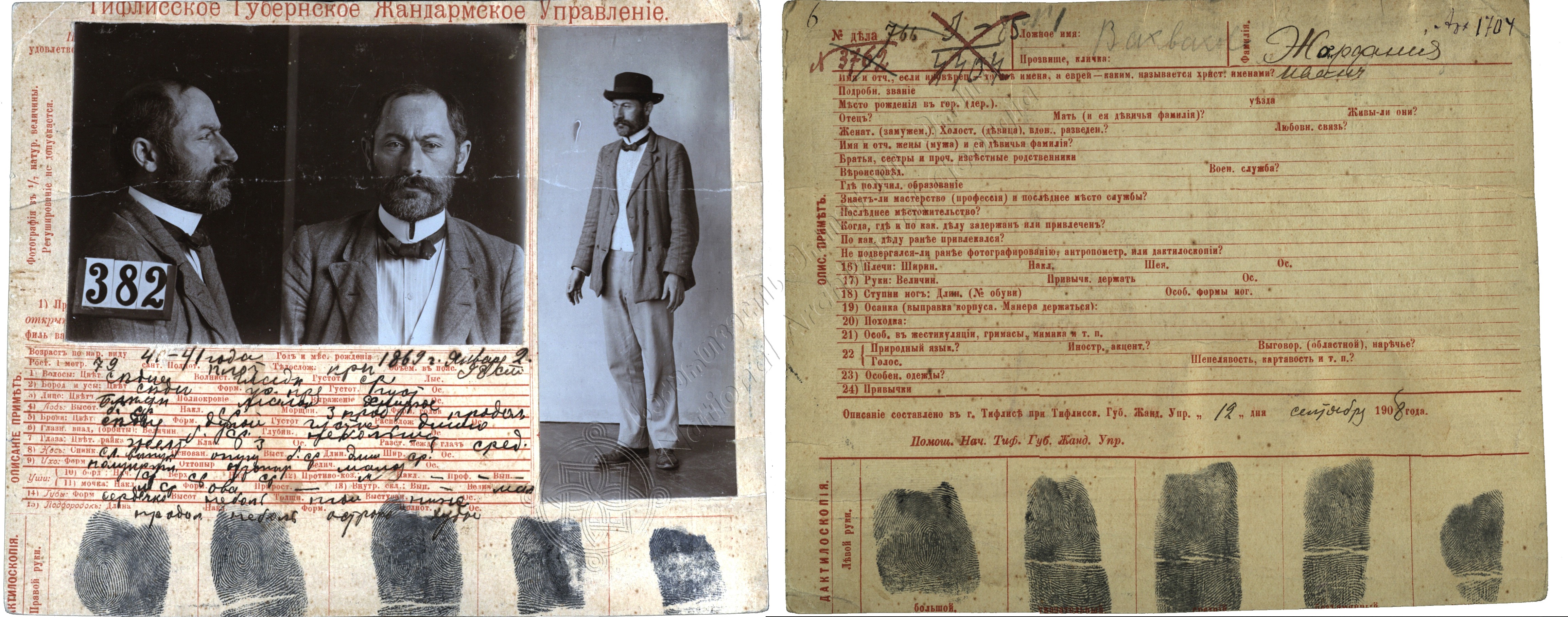 საქართველოს ეროვნული არქივი „კვირის დოკუმენტის“ ფარგლებში პირველად აქვეყნებს დოკუმენტს „თბილისის გუბერნიის ჟანდარმერიის სამმართველოს“ ფონდიდან. ბარათებზე წარმოდგენილია ნოე ჟორდანია, მომავალში საქართველოს პირველი რესპუბლიკის ხელმძღვანელი.