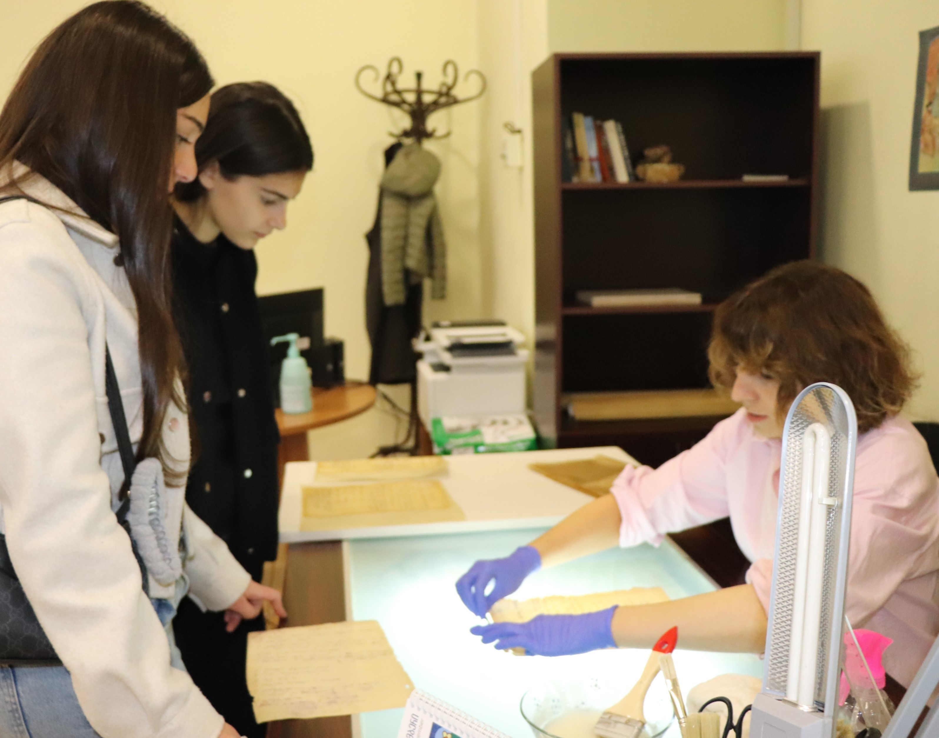 სკოლის მოსწავლეები საარქივო დოკუმენტების რესტავრაციითაც დაინტერესდნენ. მათ ეროვნული არქივის რესტავრატორებისგან დეტალური ინფორმაცია მიიღეს დოკუმენტების რესტავრაციის მეთოდებისა და პრინციპების შესახებ.