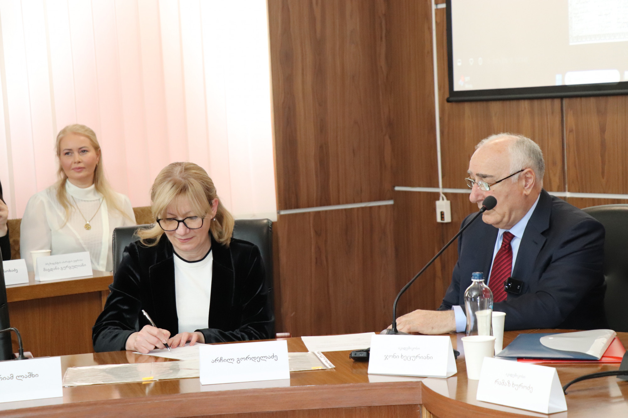 მეცნიერებათა აკადემიის პრეზიდიუმის წევრებთან ერთად სხდომაში მონაწილეობდნენ: იუსტიციის მინისტრის მოადგილე მერაბ ტურავა, განათლებისა და მეცნიერების სამინისტროს, ასევე საქართველოს პარლამენტის წარმომადგენლები, სხვა მოწვეული სტუმრები.